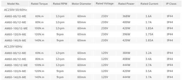 Thông số kỹ thuật động cơ cuốn chuyên dụng AM60