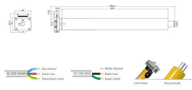 Động cơ có bộ thu trong để tích hợp điều khiển từ xa dùng sóng Radio, điều chỉnh hành trình bằng cơ khí .